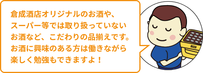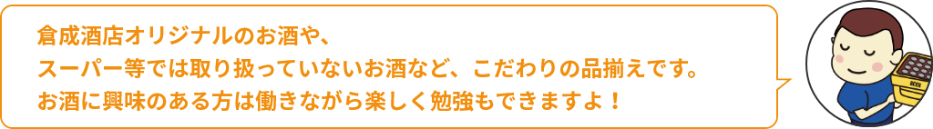 また、一般的なスーパー等では取り扱っていない珍しい商品がたくさんあるので、自然とお酒の知識が増えます。
